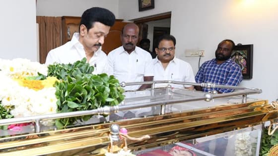 பாடகி வாணி ஜெயராம் உடலுக்கு முதல்வர் மு.க.ஸ்டாலின் நேரில் அஞ்சலி