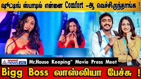 Mr.House Keeping" Movie Press Meet :முதலில் முரளி சார் மற்றும் நித்தின் சார் அவரக்ளுக்கு மிகவும் நன்றி .ஷூட்டிங் ஸ்பாடில் என்னை Comfort -ஆ வெச்சிருந்தாங்க , மற்றும் இயக்குனர் நடிகர் ஹரி மற்றும் அனைவரோடும் கூட நான் நடித்ததில் மிகவும் பெருமையாக எண்ணுகிறேன் என்று BiggBoss Losliya பேச்சு !
