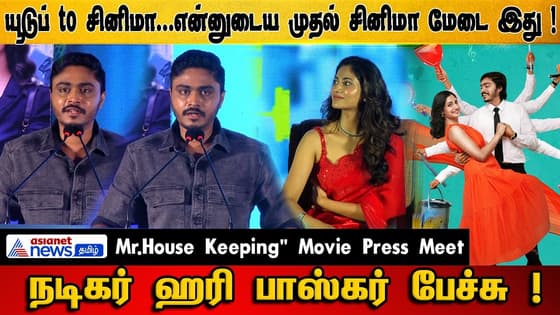 Mr.House Keeping" Movie Press Meet :எனக்கு இந்த வாய்ப்பு கிடைக்குமான்னு தெரியாமல்தான் இருந்தேன் . இதில் கிடைத்த வாய்ப்பு என் வாழ்க்கையில் ஒரு சிறப்பான தருணம் . எங்களுடைய கனவு நிறைவேறியது . என்னுடைய முதல் சினிமா மேடை இது . இதில் நடித்ததில் மிகவும் சந்தோஷப்படுகிறேன் வாய்ப்புக்கொடுத்த அனைவருக்கும் நன்றி என்று பேசினார் நடிகர் ,youtuber ஹரி பாஸ்கர் !