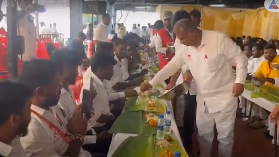 இந்த நிலையில். இன்று கொடி அறிமுக விழாவிற்கு வருகை தந்திருந்த கட்சி நிர்வாகிகளுக்கு தடபுடல் விருந்தும் ஏற்பாடு செய்துள்ளார் விஜய். வந்திருந்த அனைவரும் கண்டிப்பாக சாப்பிட்டுவிட்டு தான் செல்ல வேண்டும் என விஜய் அன்புக்கட்டளையிட்டதை தொடர்ந்து, நிர்வாகிகள் அனைவரும் உணவருந்தினர். புஸ்ஸி ஆனந்த் நிர்வாகிகளுக்கு உணவை பரிமாறினார். அப்போது எடுத்த வீடியோ காட்சிகள் வைரலாகி வருகிறது.