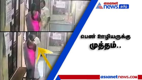 இனிப்பு வழங்கிய பெண் ஊழியருக்கு முத்தம் கொடுத்த செயல் அலுவலர்..! சிக்கிய சிசிடிவி காட்சி..