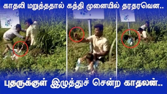 காதலி மறுத்ததால் கத்தி முனையில் தரதரவென புதருக்குள் இழுத்துச் சென்ற காதலன்.. புரட்டி எடுத்த பரபரப்பு வீடியோ...!
