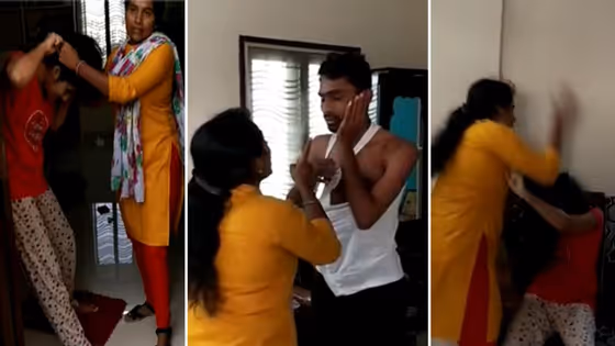 கள்ளக் காதலிக்கு மனைவி கொடுத்த பளார் பளார்..! வெளுத்து வாங்கி காரித்துப்பிய வீடியோ..