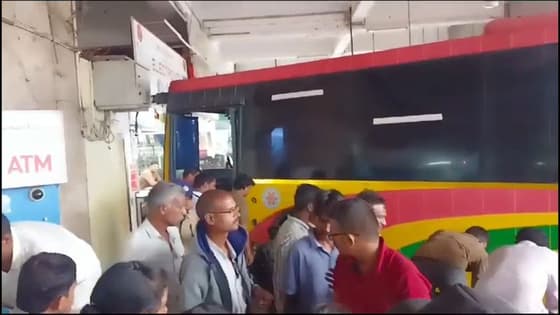 ஆந்திர மாநிலம் விஜயவாடா பேருந்து நிலையத்திலிருந்து குண்டூர் செல்வதற்காக பயணிகளுடன் அரசு போக்குவரத்து கழக பேருந்து ஒன்று காத்திருந்தது. விஜயவாடா பேருந்து நிலையத்தில் டிரைவர் பேருந்தை ஸ்டார்ட் செய்தபோது பிரேக் பிடிக்கவில்லை. இதனால், பேருந்து கட்டுப்பாட்டை இழந்து முன்னோக்கி சென்று பிளாட்பாரம் மீது ஏறியது. அப்போது அங்கு பஸ்சுக்காக காத்திருந்த பயணிகள், நடத்துனர் மீது பேருந்து மோதி விபத்து ஏற்பட்டது.