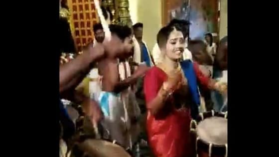 கேரள மாநிலம் குருவாயூரில் ஒரு திருமணம் நடைபெற்றது. மணப்பெண்ணின் தந்தை ஒரு செண்டை மேள வாசிப்பாளர் என்பதால் அவர் தன் குழுவுடன் செண்டை மேளம் வாசித்தார். வாசிப்பின் முடிவில் மணப்பெண்ணும் கலந்துகொண்டு செண்டை மேளம் வாசித்தார். திருமண வைபோகம் களைகட்டியது.