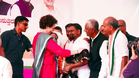 கர்நாடக மாநிலத்தில் தேர்தல் பிரச்சாரத்தில் ஈடுபட்டிருக்கும் காங்கிரஸ் கட்சியின் பொதுச்செயலாளர் பிரியங்கா காந்திக்கு அக்கட்சி தொண்டர் ஒருவர் ஆட்டுக்குட்டியை பரிசாக வழங்கியுள்ளார்.