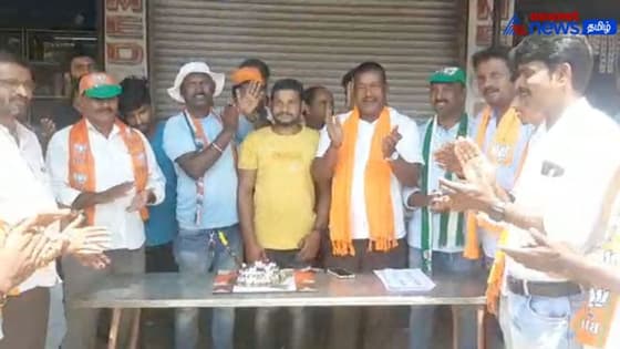 Watch : வாக்குச்சாவடி முன்பு பிறந்தநாள் கொண்டாடிய பாஜக வேட்பாளர்!
