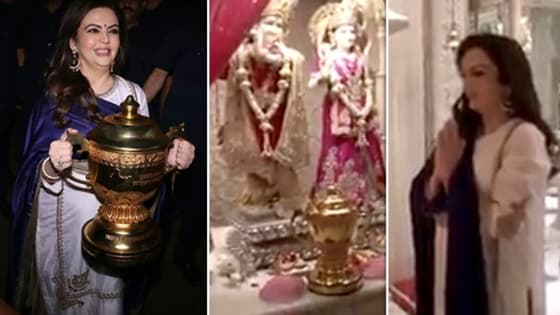 மும்பை இந்தியன்ஸ் வெற்றி பெற சாமியே காரணம்..! கோப்பையுடன் பூஜையில் இறங்கிய நிதா அம்பானி வீடியோ..