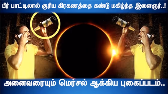 பீர் பாட்டிலால் சூரிய கிரகணத்தை கண்டு மகிழ்ந்த இளைஞர்..! அனைவரையும் மெர்சல் ஆக்கிய புகைப்படம்..