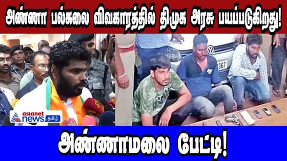 அண்ணா பல்கலை விவகாரத்தில் திமுக அரசு மீது பொது மக்கள் கேள்வி கேட்க ஆரம்பித்து விட்டார்கள். இதுவரை கண்டு கொள்ளாத திமுக அரசு தற்போது பயப்படுகிறது எனஅண்ணாமலை பேட்டியளித்தார்