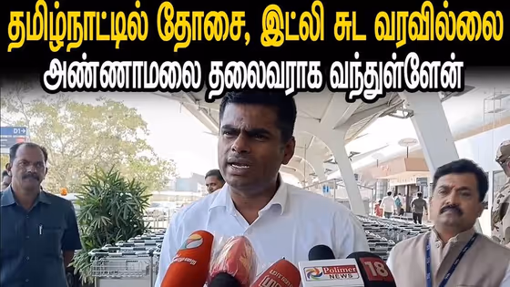 விமானநிலையத்தில் செய்தியாளர்களிடம் பேசிய பாஜக மாநிலத் தலைவர் அண்ணாமலை, தமிழ்நாட்டில் நிலவும் பல்வேறு பொய் வதந்திகளை கடந்து பாஜக வெற்றிபெறும் எனத் தெரிவித்தார். மறைந்த ஜெயலலிதா அம்மையாரின் முடிவு எவ்வாறு இருக்குமோ அதே போன்றுதான் என் முடிவும் இருக்கும் எனவும், இட்லி, தோசை சுடவரவில்லை என பாஜக தமிழக தலைவர் அண்ணாமலை தெரிவித்துள்ளார். தான் ஒரு தலைவன் என்றும் ஒரு தலைவர் போல் முடிவுகளை எடுப்பேன் யாருக்கும் பாரபட்சம் காட்டமாட்டேன் எனவும் தெரிவித்தார்.