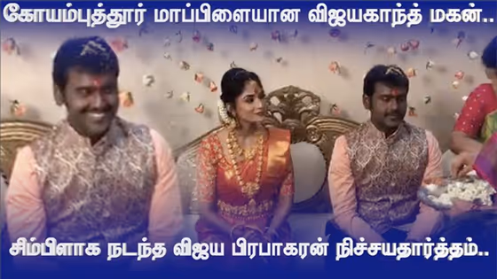 கோயம்புத்தூர் மாப்பிளையான விஜயகாந்த் மகன்.. சிம்பிளாக நடந்த விஜய பிரபாகரன் நிச்சயதார்த்தம் வீடியோ..!