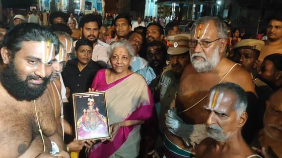 காஞ்சிபுரம் உபநிஷத் மடம், மற்றும் காஞ்சி வரதராஜ பெருமாள் கோவிலில், மத்திய நிதியமைச்சர் நிர்மலா சீதாராமன் சுவாமி தரிசனம் செய்தார்.