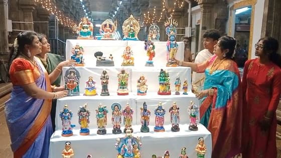 இந்தாண்டு நவராத்திரி ஞாயிற்றுக்கிழமை தொடங்கி வருகின்ற 23ம் தேதி சரஸ்வதி பூஜை மற்றும் 24-ஆம் தேதி விஜயதசமி வரை நடைபெறுகிறது. இதனை முன்னிட்டு திருச்செந்தூர் அருள்மிகு சுப்பிரமணிய சுவாமி திருக்கோவிலில் இரண்டாம் பிரகாரத்தில் 5 அடுக்குகளாக அருகருகே 5 இடங்களில் வண்ண வண்ண பொம்மைகளால் கொலு வைக்கப்பட்டுள்ளது. இதில் சுமார் 450-க்கும் மேற்பட்ட வண்ணமயமான புதிய பொம்மைகள் இடம்பெற்றுள்ளது.