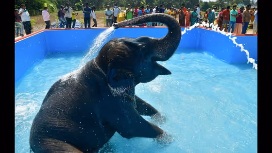 இதனைத் தொடர்ந்து கோவில் யானை கல்யாணி அந்த குளியல் தொட்டியில் ஆனந்தமாக குளித்து மகிழ்ந்தது.