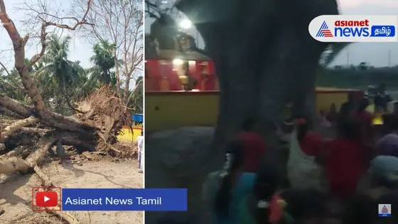 சூறை காற்றில் சாய்ந்த கோவில் மரம்; தாமாக எழுந்து நின்ற அதிசயம்: பக்தர்கள் பரவசம்