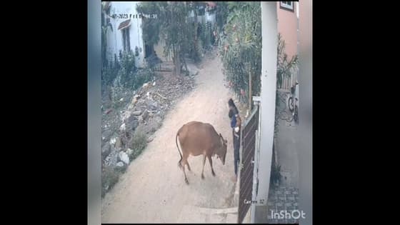 கைக்குழந்தைக்கு சாப்பாடு ஊட்டிக்கொண்டிருந்த இளம் பெண்ணை ஆக்ரோசமாக துரத்திய பசு; வீடியோ வெளியாகி பரபரப்பு