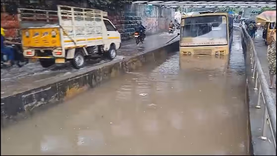 ரயில்வே சுரங்கத்தில் தேங்கிய மழை நீரில் சிக்கிய அரசுப் பேருந்து; போராடி மீட்ட அதிகாரிகள்