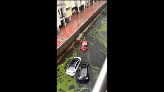 சென்னையில் பல பகுதிகளில் கனமழை வெளுத்துவாங்கும் நிலையில் அடுக்குமாடி குடியிருப்புகளுக்கு அருகில் நிறுத்தப்பட்ட கார்கள் வெள்ளத்தில் அடித்துச் செல்லப்படும் வீடியோ வெளியாகி பரபரப்பு.