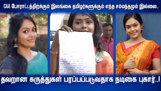 CAA போராட்டத்திற்கும் இலங்கை தமிழர்களுக்கும் எந்த சம்மந்தமும் இல்லை..தவறான கருத்துகள் பரப்பப்படுவதாக நடிகை புகார்..! வீடியோ
