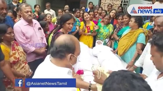 ரயில் முன் காதலனால் தள்ளி கொலை செய்யப்பட்ட கல்லூரி மாணவி சத்யா மற்றும் அவரது தந்தை உடலுக்கு அமைச்சர் தா.மோ. அன்பரசன் நேரில் மலரஞ்சலி செலுத்தினார்.