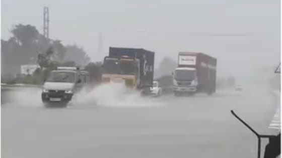 சென்னையில் கனமழை பெய்து வரும் நிலையில், சென்னை - பெங்களூரு தேசிய நெடுஞ்சாலையில் வாகனங்கள் மழை நீரில் ஊர்ந்து செல்கின்றன.