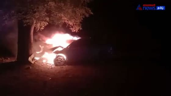 Watch : குறுக்கே சென்ற நாயால் மரத்தில் மோதிய கார்! தீப்பற்றி எரிந்ததால் பரபரப்பு!