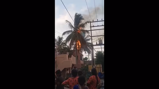 கோவை மாவட்டத்தில் இன்று பெய்த கனமழையின் போது ரத்தினபுரி சாஸ்திரி வீதியில் இடி விழுந்ததில் தென்னை மரம் தீப்பிடித்து எரிந்த வீடியோ வெளியாகி பரபரப்பை ஏற்படுத்தி உள்ளது.