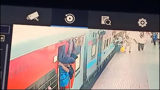 அதில் ஒரு பெண் ரயிலில் ஏறிவிடவே இரண்டாவதாக வந்த பெண் ரயிலில் ஏற முற்பட்டபோது தவறி கீழே விழுந்தார். பெண் பயணி ஓடும் ரயிலில் இருந்து கீழே விழப்போவதை அறிந்த பாதுகாப்புப் படை வீரர் ஒருவர் துரிதமாக செயல்பட்டு கீழே விழுந்த பெண் பயணியை நொடிப் பொழுதில் அங்கிருந்து இழுத்து அவரது உயிரை காப்பாற்றினார்.