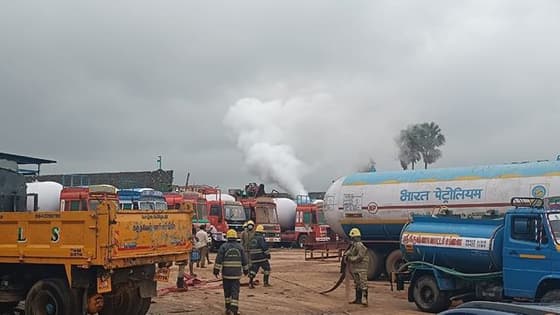 இதில் எரிவாயு வால்வு உடைந்து லாரியில் எரிவாயு கசிவு ஏற்பட்டது. இதனால் அங்கு பரபரப்பு ஏற்பட்டது. லாரியில் ஏற்பட்ட கசிவை நிறுத்த ஊழியர்கள் முயற்சித்தனர். மேலும் அங்கு தீயணைப்பு துறையினரும் குவிக்கப்பட்டனர். லாரிகளை சுற்றி சுமார் 1 கிலோ மீட்டர் தொலைவு வரை போலீசார் தீக்குச்சி, செல்போன், டார்ச் லைட் போன்றவற்றை பயன்படுத்த வேண்டாம் என அறிவுறுத்தி கண்காணித்து வந்தனர்.