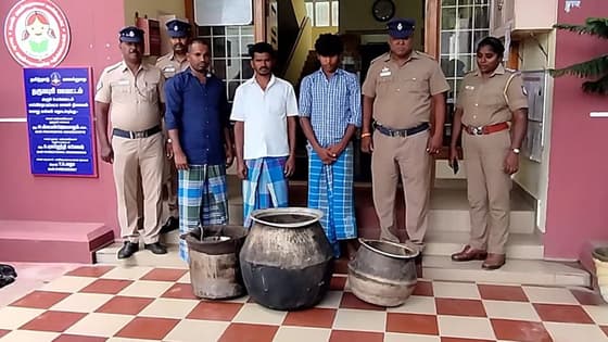 அப்போது முள்ளிகாடு மாதையன் என்பவரின் விவசாய தோட்டத்தில், ராஜேந்திரன் (வயது 38), திருமூர்த்தி (23), மாதையன் (44) ஆகிய மூவரும் ஊறல் போட்டு சாராயம் காய்ச்சிக்கொண்டு இருந்தனர். போலீசாரை கண்டதும் தப்பி ஓட முயற்சி செய்தனர். போலீசார் அவர்களை மடக்கி பிடித்து மூவரையும் கைது செய்தனர். மேலும் அவர்களிடம் இருந்து சாராயம் காய்ச்ச பயன்படுத்திய 300 லிட்டர் ஊறல் கைப்பற்றி சம்பவ இடத்திலேயே ஊற்றி அளிக்கப்பட்டது. மேலும் 15 லிட்டர் சாராயமும் பறிமுதல் செய்யப்பட்டது.