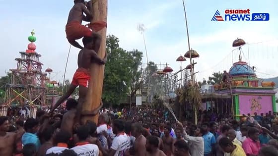 திண்டுக்கல் மாவட்டம் நத்தம் அருகே நடைபெற்ற கோவில் திருவிழாவின் முக்கிய நிகழ்வான வழுக்குமரம் ஏறும் நிகழ்வில் திரளான இளைஞர்கள் கலந்து கொண்டனர்.