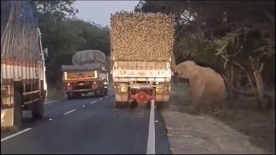 இந்நிலையில் ஈரோடு மாவட்டம் பண்ணாரி அம்மன் கோயில் அருகே காட்டுக்குள் இருந்து வெளியேறிய யானை ஒன்று அவ்வழியாக சென்ற கரும்பு லாரியை வழிமறித்து கரும்புகளை ஒவ்வொன்றாக எடுத்து ருசி பார்த்தது. மேலும் லாரியை எடுக்க முயன்ற ஓட்டுநரையும், உதவியளரையும் காட்டு யானை துரத்திய நிலையில்,