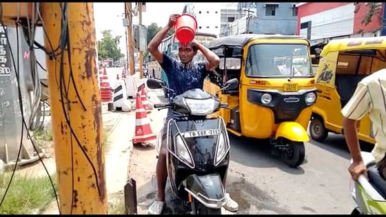 இணையத்தில் வைரலாக வேண்டும் என்பதற்காக நடுரோட்டில் இருசக்கர வாகனத்தில் இருந்தவாறு குளித்த இளைஞருக்கு ரூ.3,500 அபராதம் விதித்து காவல்துறை அதிகாரிகள் வசூல் செய்தனர்.