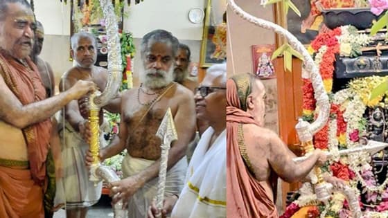 ராமர் கோயிலுக்கு 13 கிலோ எடையுள்ள வெள்ளி வில், அம்பு காணிக்கை! அதற்கு முன்னதாக காஞ்சிபுரம் வந்த பக்தர்கள்!