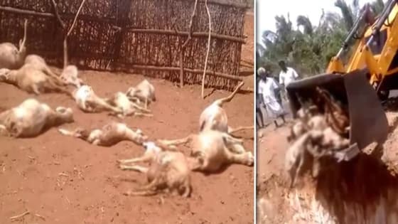 வெறி நாய்கள் கடித்து 30 ஆடுகள் பலி..! குழிதோண்டி புதைத்த அதிர்ச்சி வீடியோ..