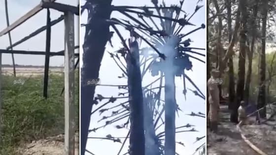மர்ம ஆசாமிகள் வைத்த தீ.. கருகிய பனைமரம் நாசமான நிழற்குடை !! கரூர் அருகே நடந்த சம்பவம் வீடியோ