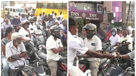 ஹெல்மெட்டோட வாங்க, டிபன் பாக்சோட போங்க; கரூர் போலிசார் விப்புணர்வு