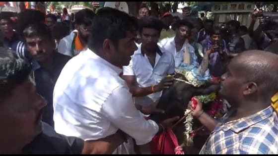 மதுரை மாவட்டத்தில் பாதயாத்திரையின் துவக்க நிகழ்வில் வரவேற்பிற்காக கொண்டுவரப்பட்ட காளை திடீரென ஆக்ரோஷமான நிலையில் பாஜக தலைவர் அண்ணாமலை அதனை அமைதிப்படுத்திய காட்சி வைரலாகி வருகிறது.