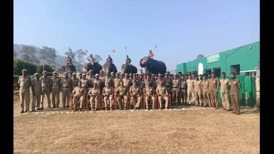 ஒரே நேரத்தில் தும்பிக்கையை உயர்த்தி தேசிய கொடிக்கு மரியாதை செலுத்திய முதுமலை வளர்ப்பு யானைகள்