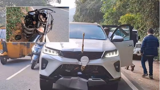 நீலகிரி மாவட்டம் குன்னூர் மேட்டுப்பாளையம் தேசிய நெடுஞ்சாலை காந்திபுரம் அருகே குன்னூரில் இருந்து கீழ்நோக்கி வந்த இருசக்கர வாகனம் சுற்றுலாத்துறை அமைச்சரின் கார் மீது மோதியதில் இரு சக்கர வாகன ஓட்டி பலத்த காயமடைந்தார்.