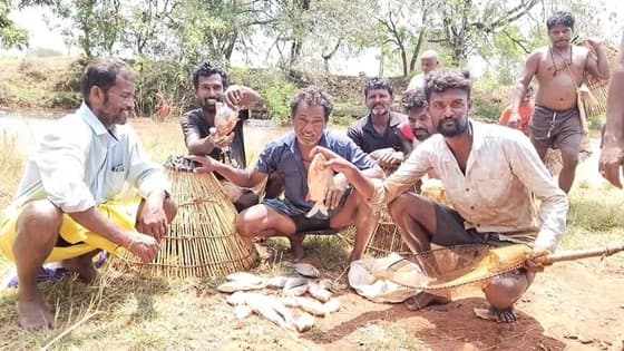 புதுக்கோட்டையில் போட்டி போட்டு மீன்களை அள்ளிய கிராம மக்கள்