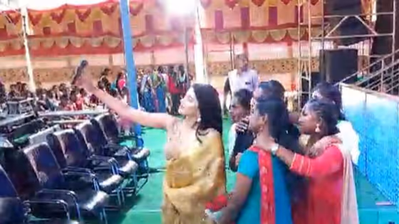 கல்லூரி ஆண்டுவிழாவில் நடிகை மிர்னாளினி ரவி கலந்து கொண்டு ஆடல் பாடல்களுடன் கொண்டாடினார். ஏராளமான மாணவ மாணவிகள் செல்பி எடுக்க வற்புறுத்தி சத்தமிட்டதால் பரபரப்பு ஏற்பட்டது.