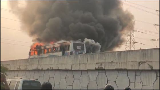 இதனைத் தொடர்ந்து பயணிகள் அனைவரும் பேருந்தை விட்டு விரைவாக கீழே இறங்கிய நிலையில் பேருந்து மளமளவென தீப்பிடித்து எரியத் தொடங்கியது. இது தொடர்பாக தீயணைப்புத் துறையினருக்கும் தகவல் தெரிவிக்கப்பட்டது. ஆனால் தீயணைப்பு அதிகாரிகள் வருவதற்குள் பேருந்து முழுவதும் தீ பரவியது.