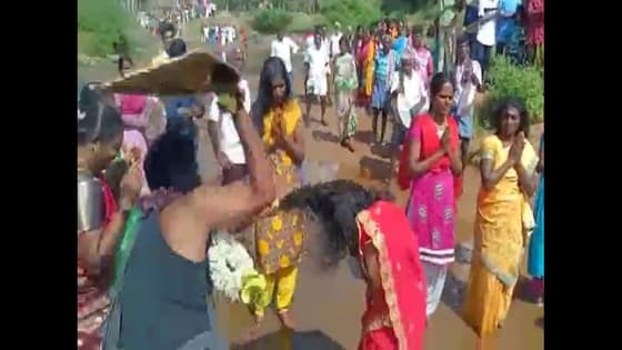 சேலம் அருகே காணும் பொங்கலன்று நடைபெற்ற பேய் விரட்டும் வினோத திருவிழாவில் சாமியார் பெண்களை முரத்தால் தாக்கி பேயை விரட்டினார்.