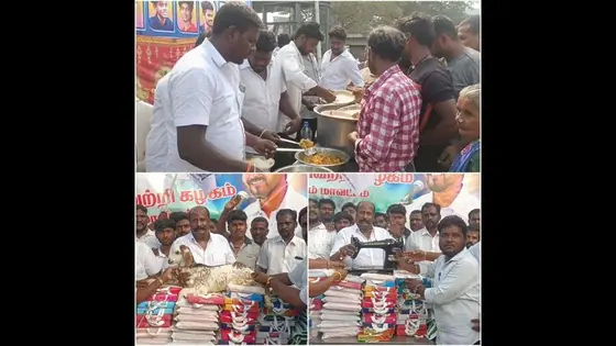 இதனைத் தொடர்ந்து 1000 நபர்களுக்கு அன்னதானமும், தூய்மை பணியாளர்களுக்கு அரிசி, துணி மற்றும் ஆடு, கோழி உள்ளிட்ட நலத்திட்ட உதவிகள் வழங்கினர். அரசியல் கட்சி அறிவித்த சூழலில் நலத்திட்ட உதவிகள் வழங்கி விஜய் ரசிகர்கள் கொண்டாட்டத்தில் ஈடுபட்டு வருகின்றனர்.