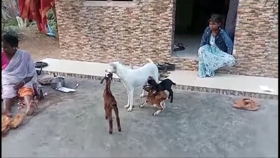 மூன்று ஆட்டுக்குட்டிகளில் இரண்டு குட்டிகள் தட்டில் வைக்கப்படும் பாலினை குடித்து விடுகின்றன. ஆனால் ஒரு குட்டி மட்டும் தட்டில் வைக்கும் பாலினை குடிக்காமல் வீரமணி வளர்க்கும் நாயிடம் பாலை குடித்து வருகிறது. நாயும் தாராளமாக ஆட்டுக்குட்டிக்கு பால் கொடுத்து வருகிறது. இந்த வீடியோ காட்சிகள் சமூக வலைத்தளங்களில் வைரல் ஆகி வருகிறது.