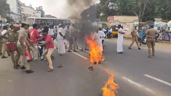 காவிரி மேலாண்மை ஆணைய தலைவரின் உருவ பொம்மையை எரித்து போராட்டம்; தஞ்சையில் பரபரப்பு