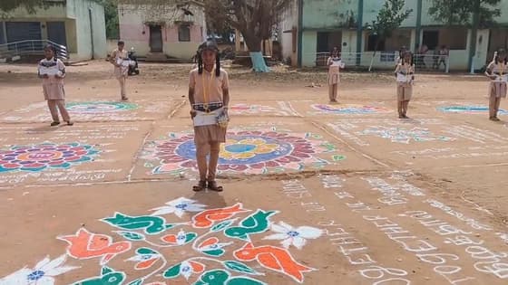 வேற்றுமையில் ஒற்றுமையை ரங்கோலி மூலம் வெளிப்படுத்திய அரசுப்பள்ளி மாணவிகள்; குடியரசு தினத்தை முன்னிட்டு அசத்தல்