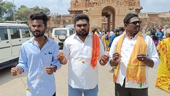 காதலர் தின கொண்டாட்டம்; தஞ்சை பெரியகோவிலில் தாலியுடன் சுற்றி திரிந்த இந்து மக்கள் கட்சியினர் - போலீஸ் எச்சரிகை